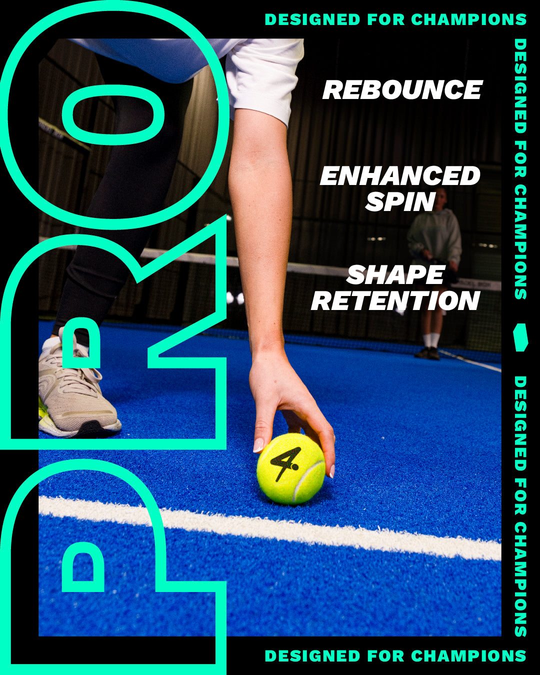 Designed for champions, made for momentum. Feat4 tournament balls bring professional-grade precision to every shot. Built for enhanced spin, shape retention & re-bounce, these balls are made to the intensity of tournament play. Powered by our belief in progress, passion & play, these balls perform under pressure.